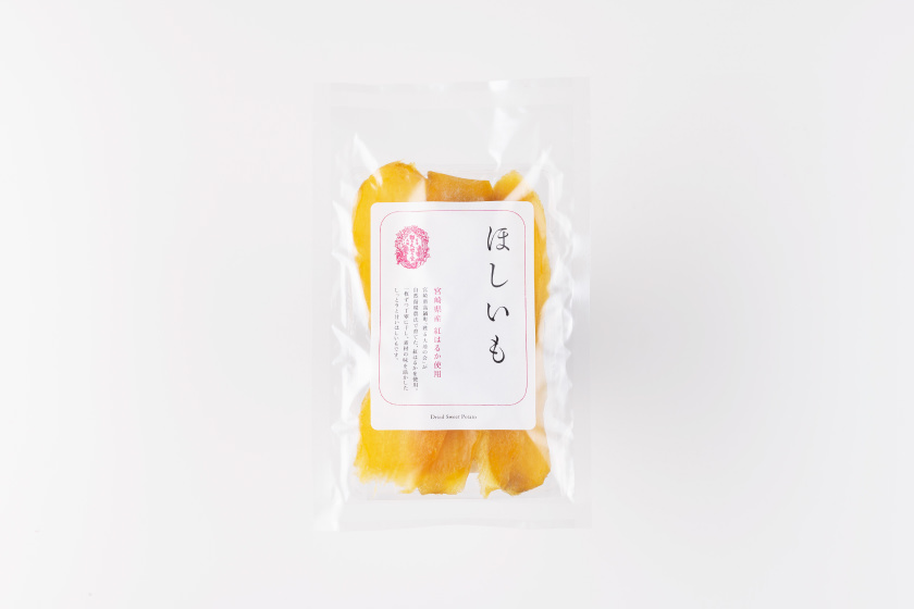 宮崎県高鍋町「甦る大地の会」と契約農家が自然循環農法で育てた、紅はるかを使用。一枚ずつ丁寧に干し、素材の味を活かしたしっとりと甘いほしいもです。