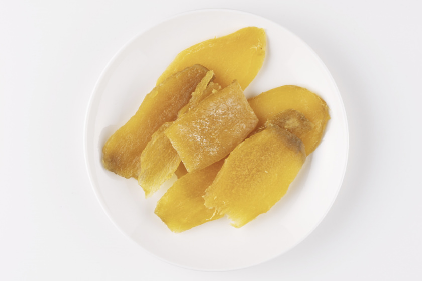 宮崎県高鍋町「甦る大地の会」と契約農家が自然循環農法で育てた紅はるかを使用しています。有機栽培されたものだけを使い、一枚ずつ丁寧に干し、素材の味を活かしたしっとりと甘いほしいもです。